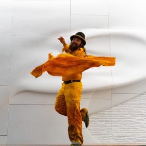 Men in Motion is a portrait series featuring men styled in dash-dyed garments and photographed in movement — in places where they come alive. This project celebrates masculine expression, individuality, and embodied identity through color and motion.