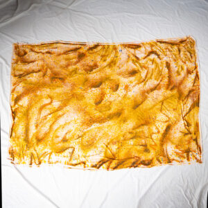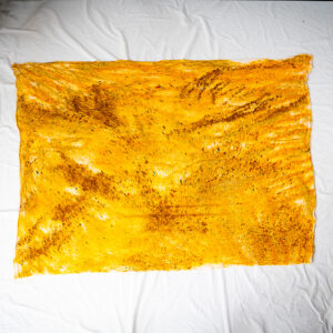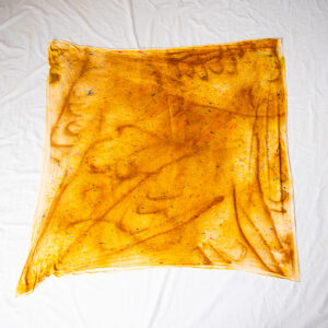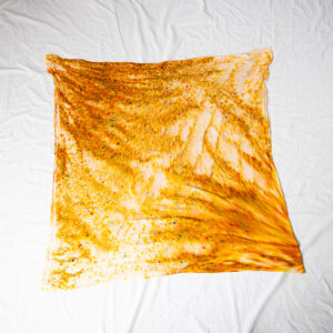 Open, fold, or let the Gold Square Wrap fall — the 50×50 inch size means it works as a shawl, a poncho, or a room-filling statement piece.