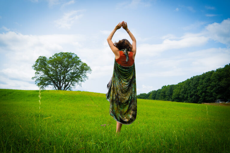 “I will never forget when I began dancing again after 10-plus years of feeling constricted and locked in my mind—forgetting my deep passion and love of dance. For most of my life, I experienced constant anxiety. It consumed me and led me to hyper-fixate and be disconnected from others and my body. I ignored my body. Anxiety and other things led me to deprive my body of nourishment—food and other sources. I still deprive myself from time to time and am untangling the roots. And yet, I feel free. I can now sit with the discomfort and pain and any emotion. I am learning and unlearning. Dance is a source of this freedom. It allows me to dance with shadow, light, and everything between and beyond. It helps me give thanks to this body for all that it does. Simply being alive is a gift. Dance is home. It reminds me repeatedly to let go, release control, and trust this body, mind, and soul in this dance of life.”