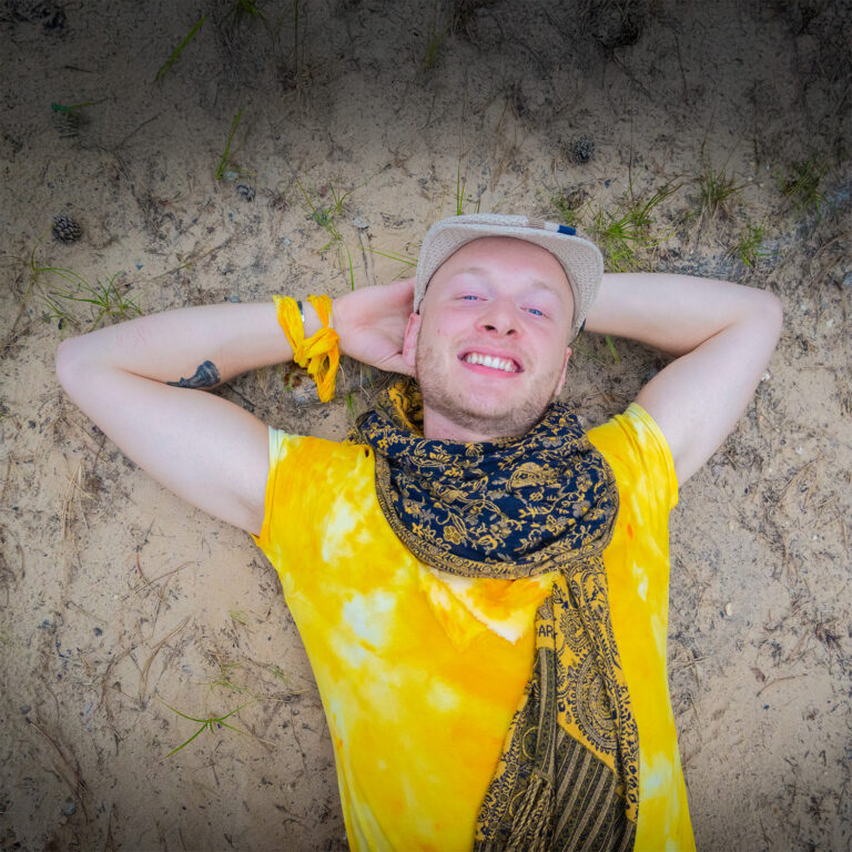 Daffodil isn’t just a color—it’s a frequency Jesse lives in. As the youngest of ten, with lived experiences across Egypt, Germany, and Nicaragua, he radiates a grounded joy that often follows grief. He’s spent the last year steeped in healing and presence, offering massage and presence wherever he goes.