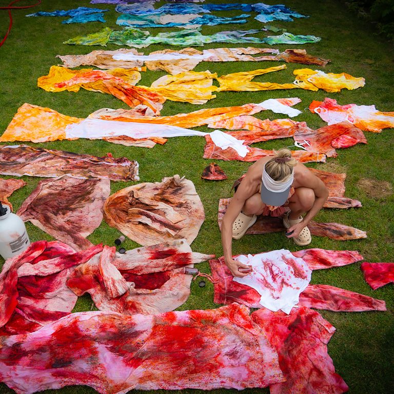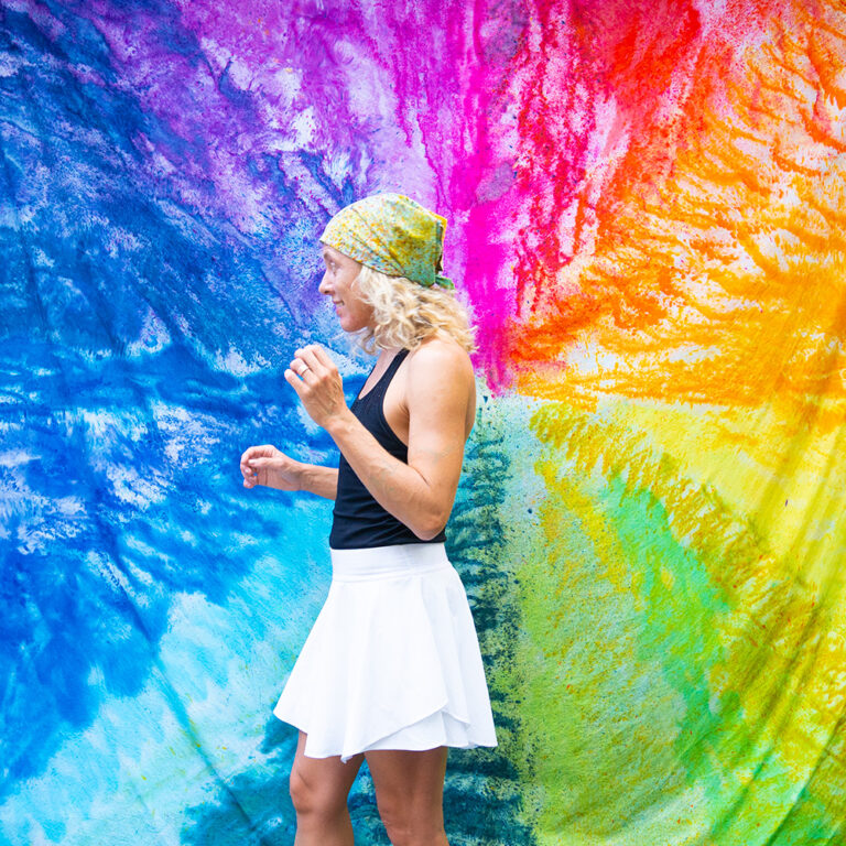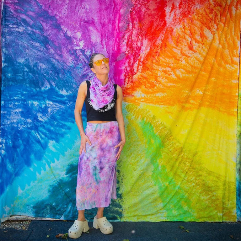 And then came color. The first time I mixed Procion MX pigment and watched it activate on wet fabric — watched it travel where I hadn’t told it to go, land in patterns I hadn’t planned, find beauty in what I would have called a mistake — something in my nervous system recognized it. Here was a sensation I could choose. Here was a conversation with something unpredictable that I could also trust. I stopped trying to control the outcome. I started collaborating with it.
