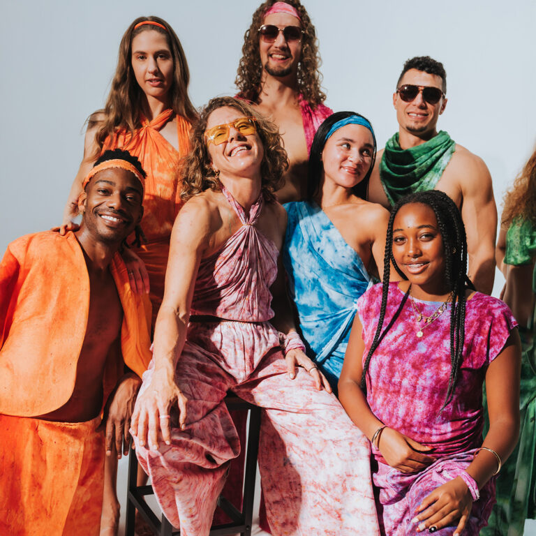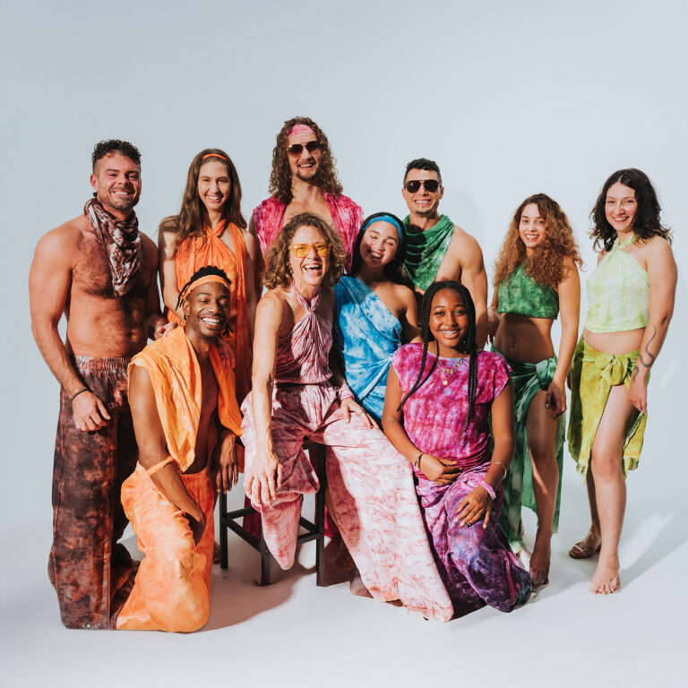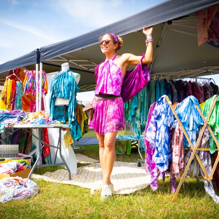 We have 150 activated dyes, hand-dyed scarves, apparel, and jewelry — each piece one of a kind, each color chosen with intention, waiting to go home with you.