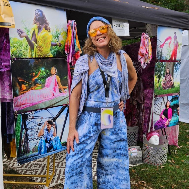 More ∞ Joy began in my garden and my art room, in the private practice of healing when no one was watching. It became public slowly — a session here, a pop-up there, a scarf draped over someone else’s shoulders and the look on their face when the color landed right.