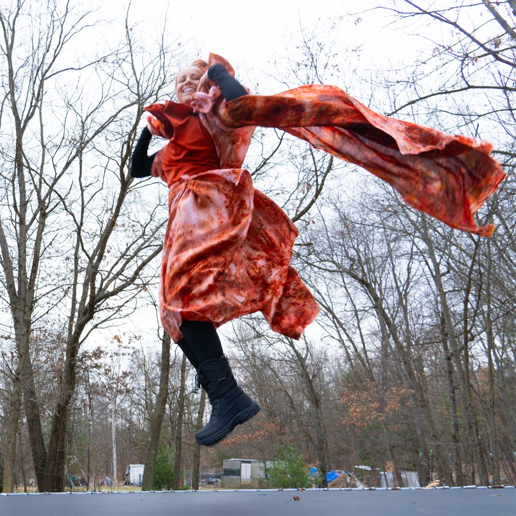 Coming off the Cosmic Bodies runway — where eight planetary looks stepped into living orbit at Michigan Fashion Week — I’m bringing that energy out of the studio and into the wild. Into a fire-lit backyard tucked into two acres of cedar and sky, twenty minutes north of Grand Rapids.