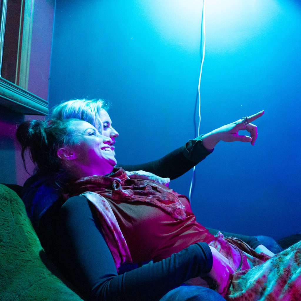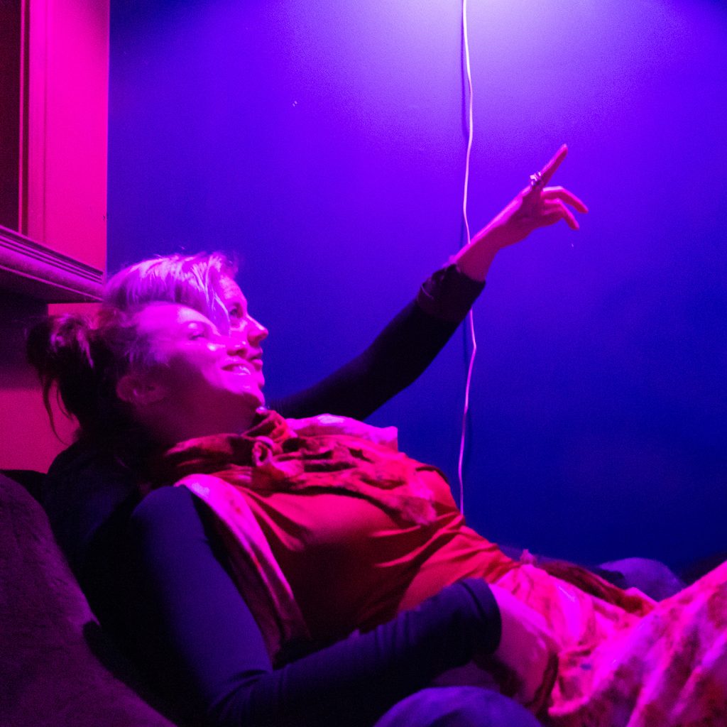 Kami went deep. She layered herself into the darker end of the cosmos — Pluto’s mystery, the moon’s shadow, the purples that exist at the edge of what light can reach. In that palette, her presence became something the camera loved and the fire understood. There’s something about someone finding the exact color that matches their inner weather. You could see it happen in real time when Kami pulled those layers on.