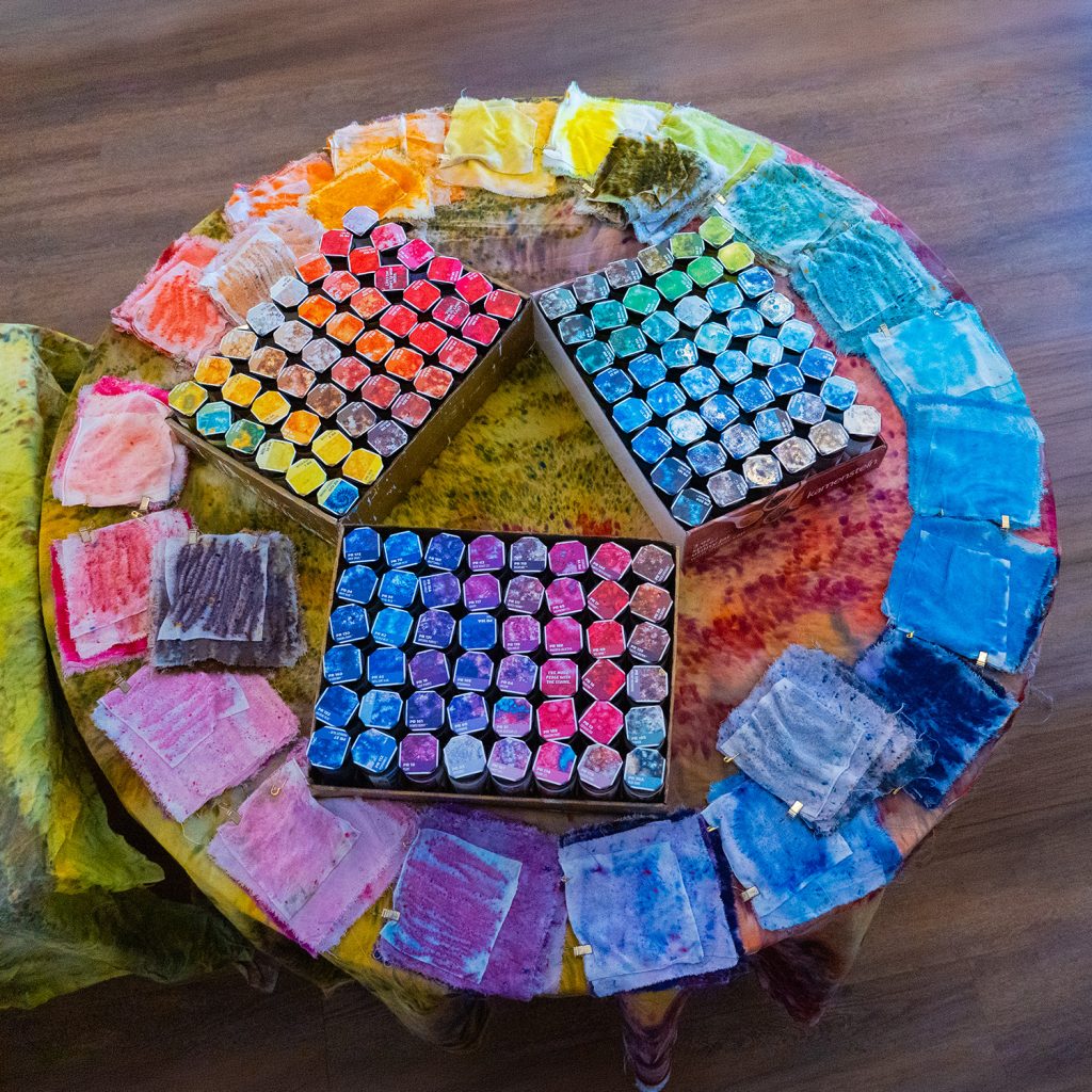 Just 10 minutes, 150 colors, and a blank 22×22 cotton bandana.