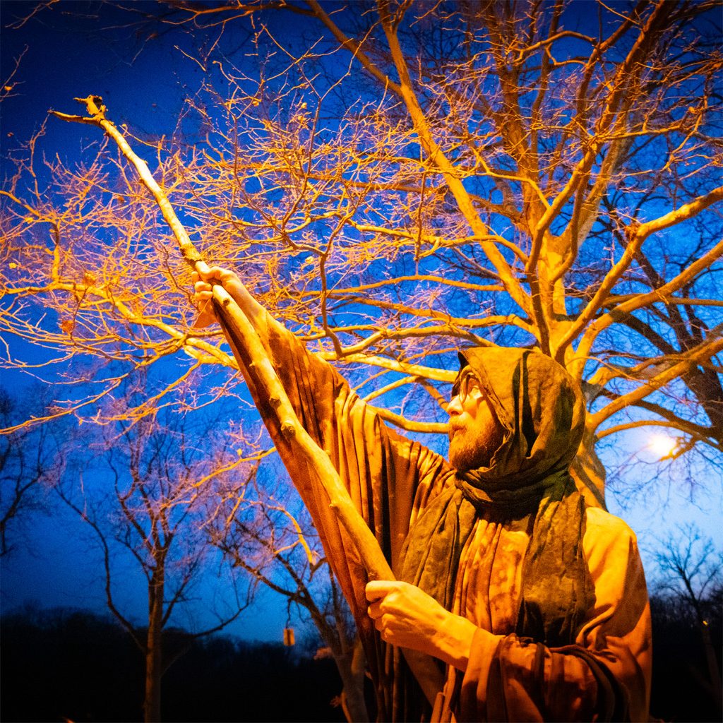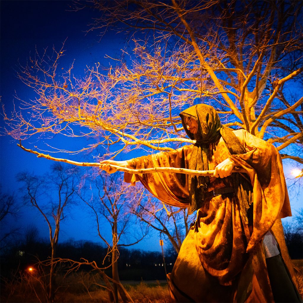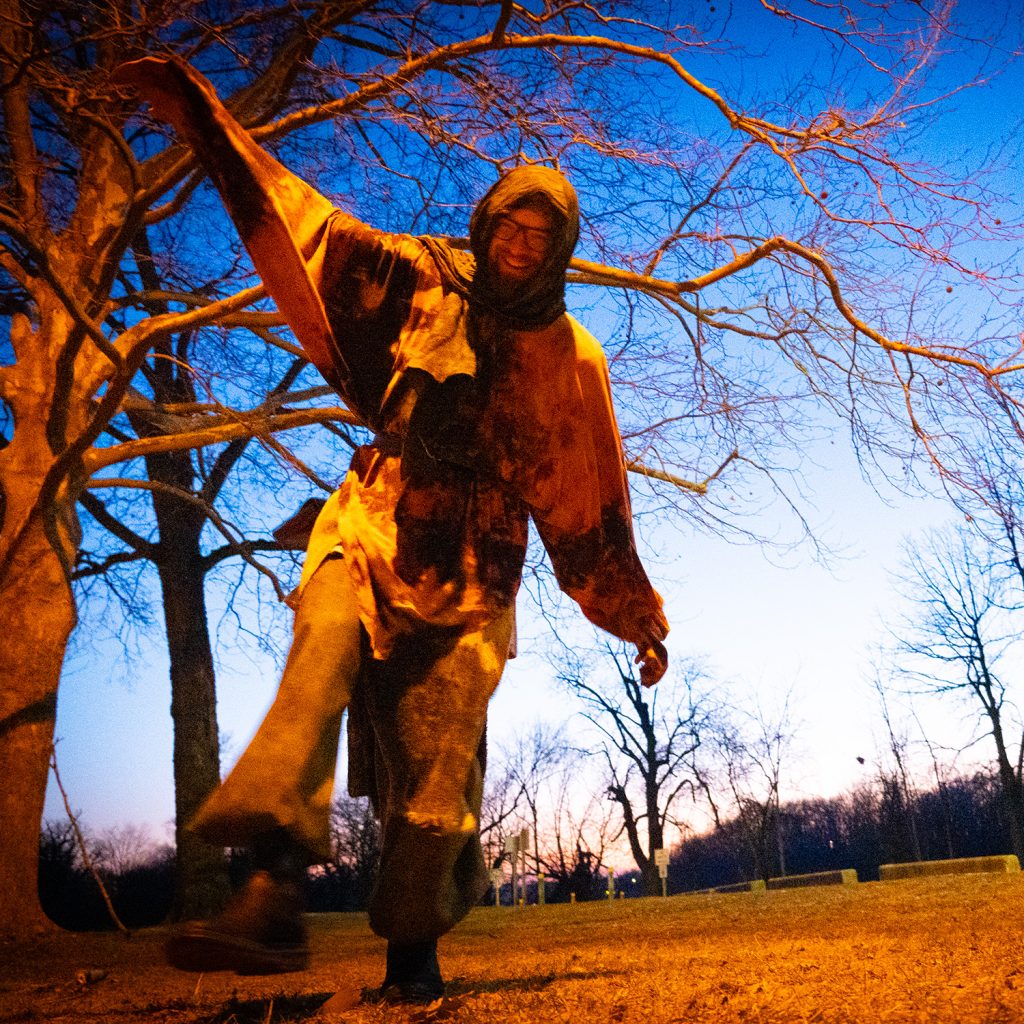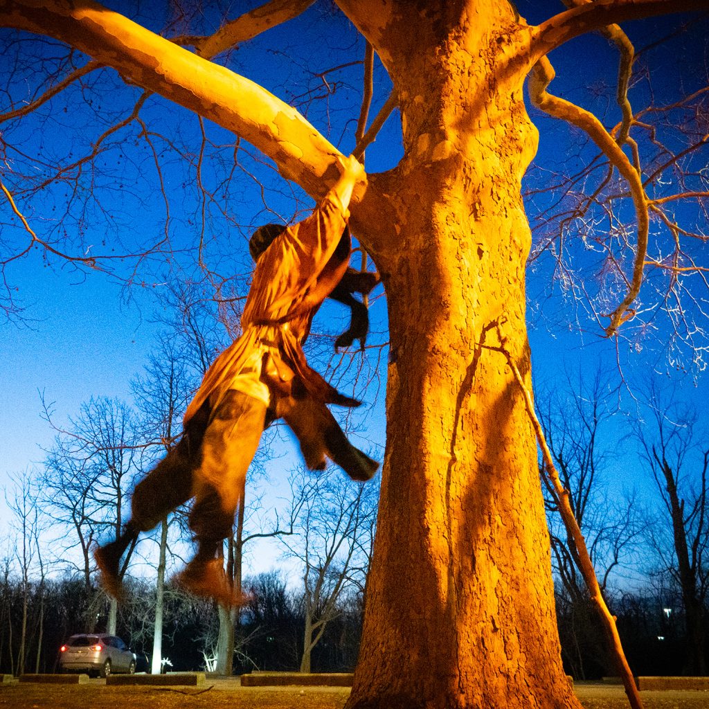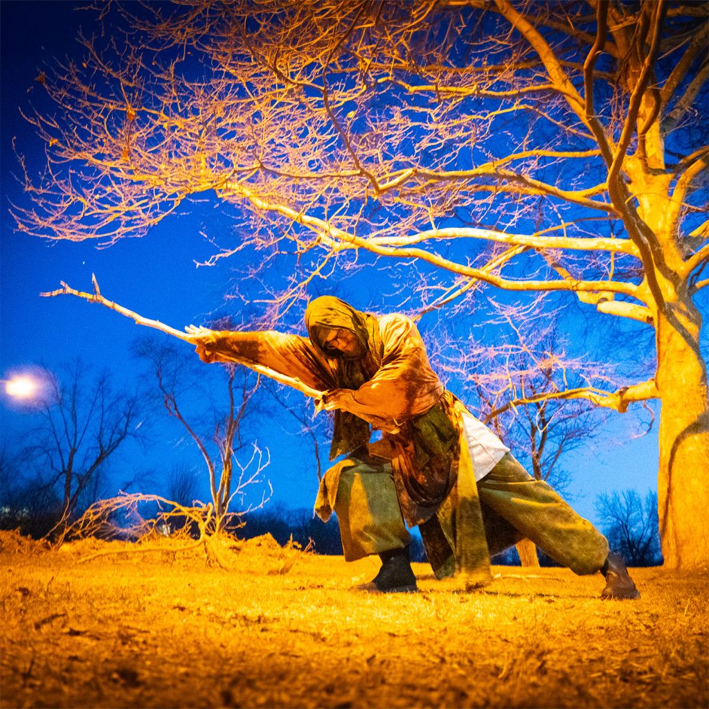 We shot at Riverside Park near dusk, catching the soft drop of the setting sun. In the cold air, something shifted in Nate’s body language. He found a walking stick from the forest and began to play — dancing, jumping, leaning into the landscape.