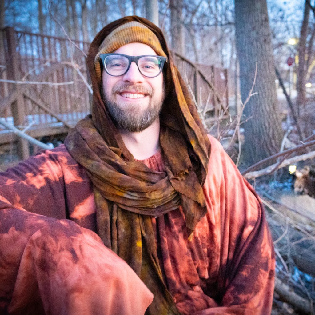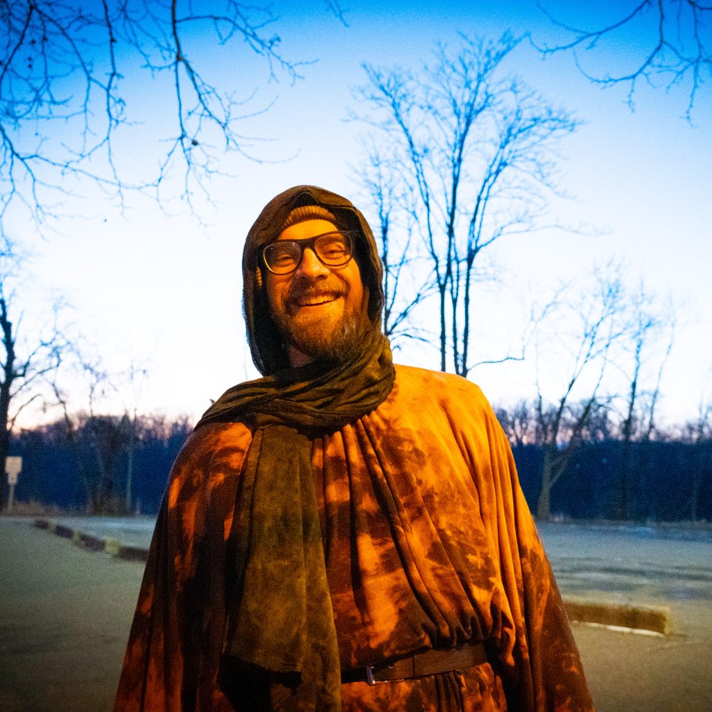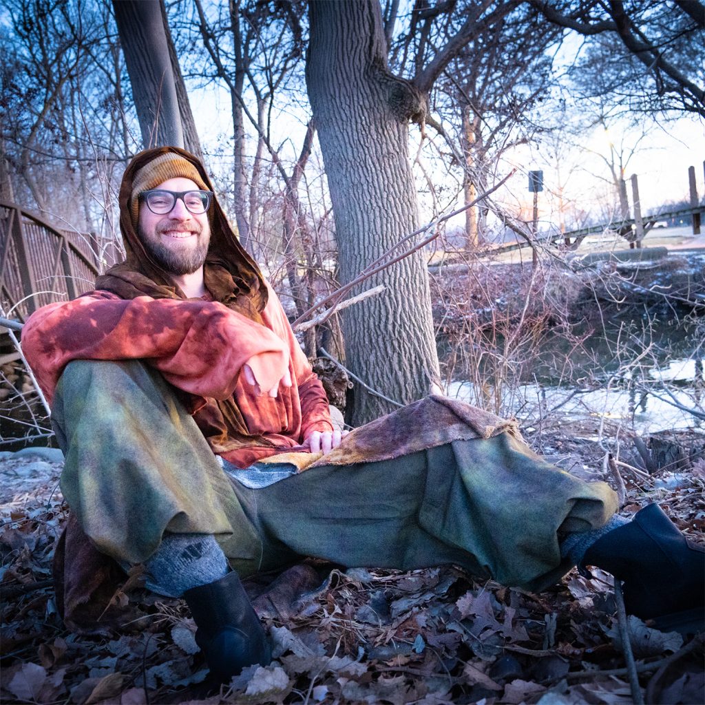 Working with Nate on this Men in Motion look was deeply gratifying. Nate first stepped into the More ∞ Joy world during last year’s ArtPrize project, The Spectrum Between Us, dressed in Cerulean Blue. Since then, it’s been powerful to watch how his relationship with color continues to evolve. This time, something new revealed itself. When Nate moves through shades of the forest — Moss Green, Brazil Nut, the deep browns of earth — he doesn’t just look aligned. He comes alive.