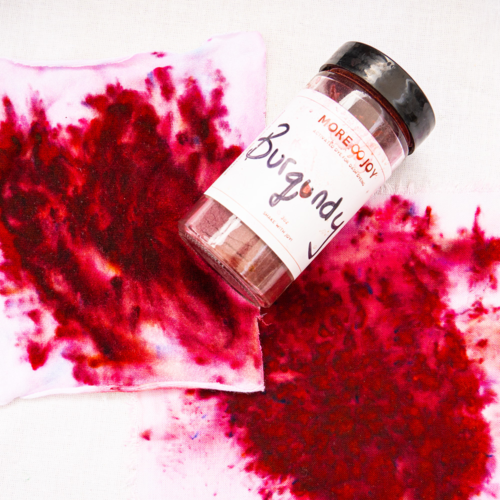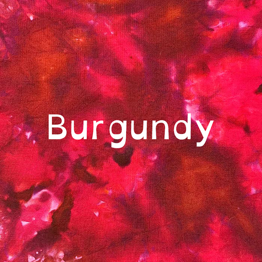 Burgundy is a rich, wine-dark red with purple undertones — sophisticated and enduring. Named after the Burgundy wine region of France. Dharma Trading Co. #17. An Autumn classic that anchors warm, deep complexions; pairs with Red Wine and Dances With Raisins for a full warm-deep red-magenta family.