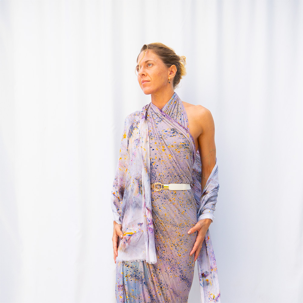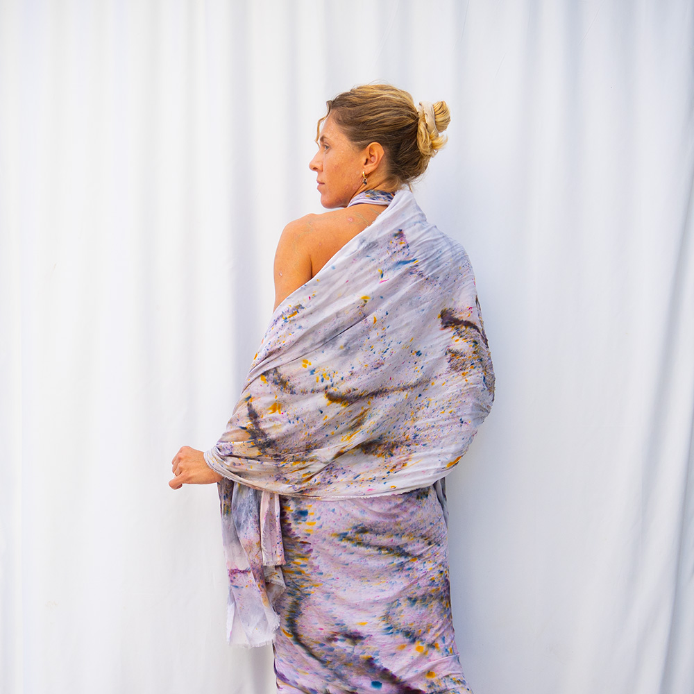 Immerse yourself in the enchantingly soft world of color in our hand-dyed Rayon scarf, a masterpiece crafted using the mesmerizing technique of flash setting fiber-reactive dyes. Each scarf is a canvas of unique expression, where the dyeing process unlocks a one-of-a-kind journey of color.