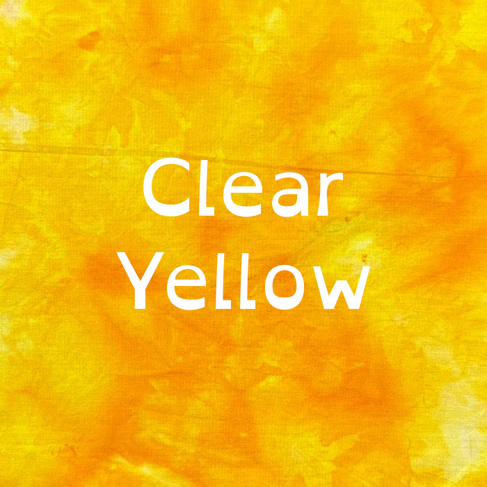 Clear Yellow is a pure, uplifting warm yellow with no muddiness or gray — the most transparent of our yellows. A Spring essential: light, vivid, and warm. Dharma Trading Co. #3A. Use at light concentration for a luminous golden tint, or full-strength for a clear, hopeful yellow statement.