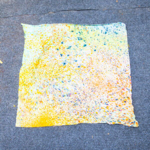 The Custom Celebratory Tapestry Bandana is a 22×22 inch square cut from Rayon + Spandex. The rayon-spandex blend has a soft stretch and a smooth hand feel. Each piece is hand dash-dyed using Dharma Procion MX fiber reactive dye, setting color permanently into the fiber. Care: machine wash cold. Lay flat or hang to dry.
