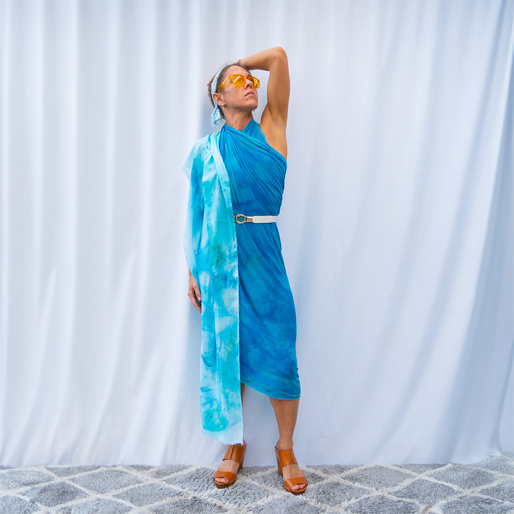 Loop, belt, or let the Cyan Slim Wrap trail — the 20×72 inch rectangle becomes a scarf, a sash, or a layering piece without trying.