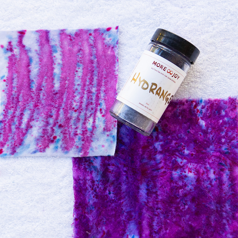 Hydrangea is a vibrant, botanical violet — the color of hydrangea blooms at their most vivid. Light and medium in chroma, it sits in Summer with Spring energy. Dharma Trading Co. #159. Pairs with Lilac and Lavender for a soft cool-violet family; particularly beautiful on fair and medium cool-toned complexions.