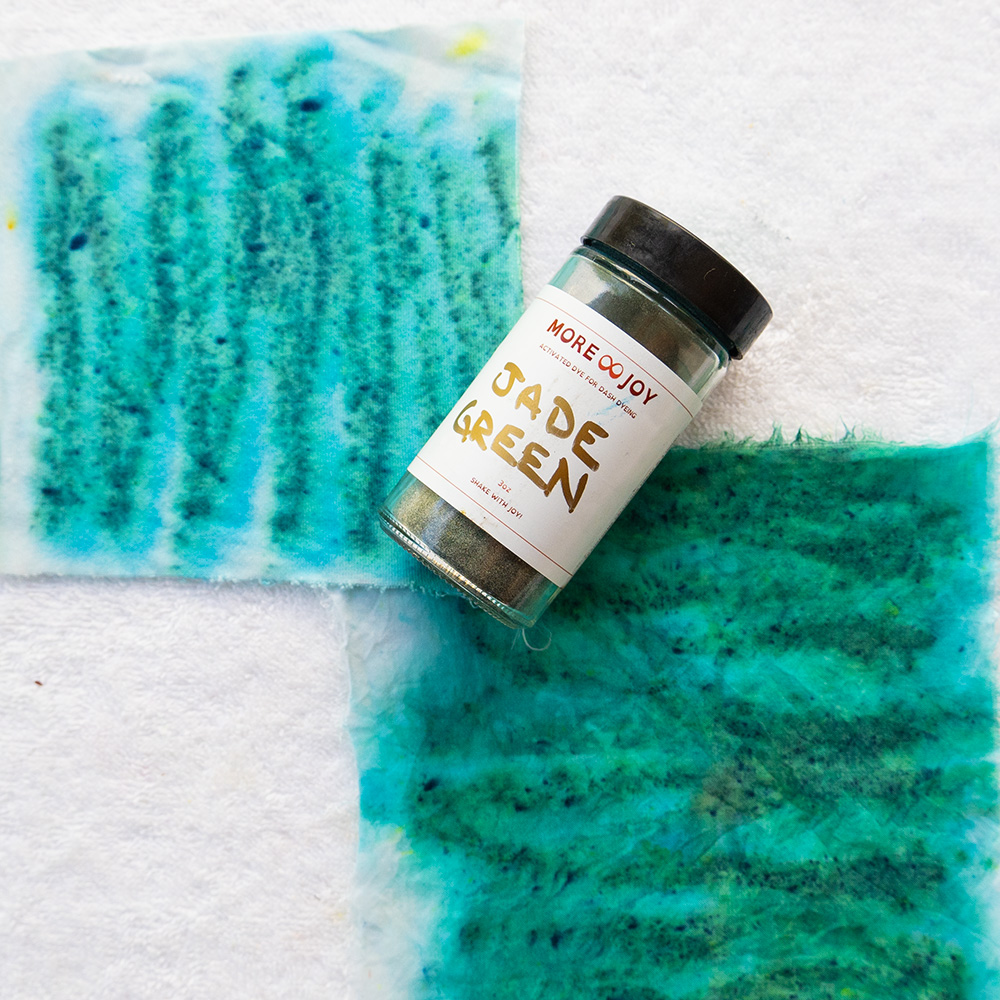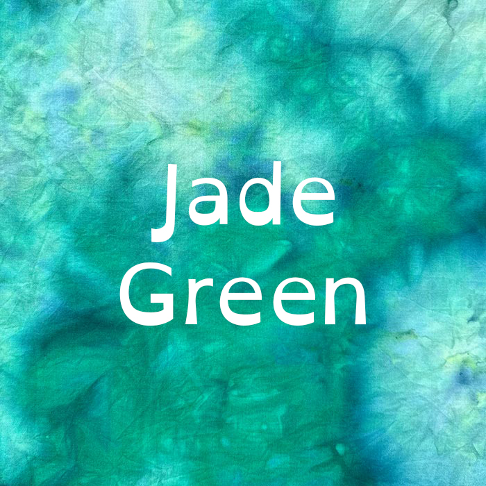 Jade Green is a rich, jewel-toned cyan-green — the color of polished jade stone, luxurious and grounding. Dharma Trading Co. #50. Historically associated with virtue, protection, and prosperity in East Asian cultures. Pairs with Cayman Isle Green and Aqua Marine for a warm-cyan range; flattering on medium and olive complexions.