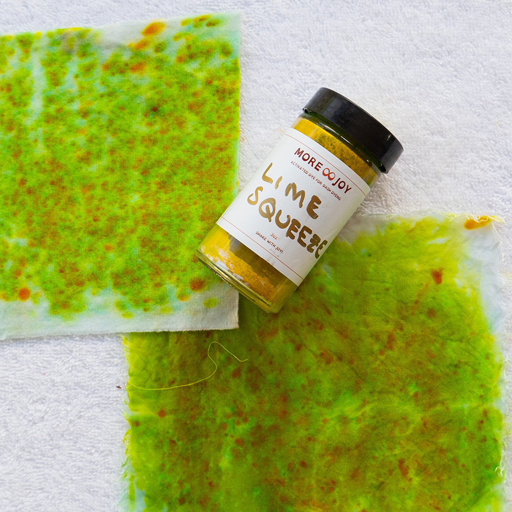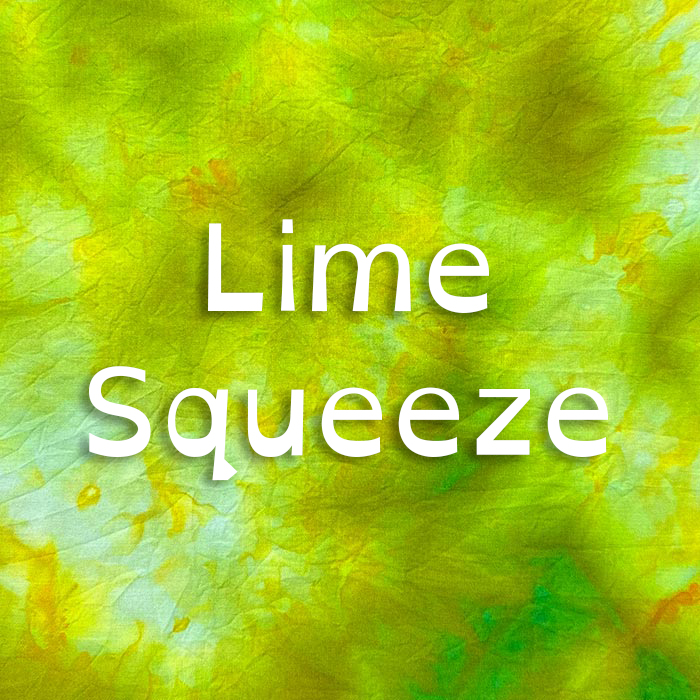 Lime Squeeze is a vivid, freshly-squeezed lime green — energizing and alive. A Spring green at its most expressive: clear chroma, warm-yellow lean, light and forward. Dharma Trading Co. #149. Pairs with Electric Green and Bright Green for a vivid warm-green family, or with Hot Pink for a bold complementary Spring contrast.