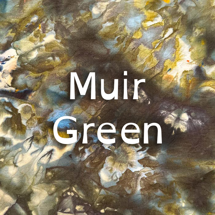 Muir Green is a soft, forest-inspired green-gray — serene and grounding, named in spirit after the wild places of Muir Woods. A deep, muted Autumn neutral. Dharma Trading Co. #170. Pairs with Olive Drab and Sage Green for a sophisticated olive-gray neutral range; flattering on medium, olive, and deep complexions.
