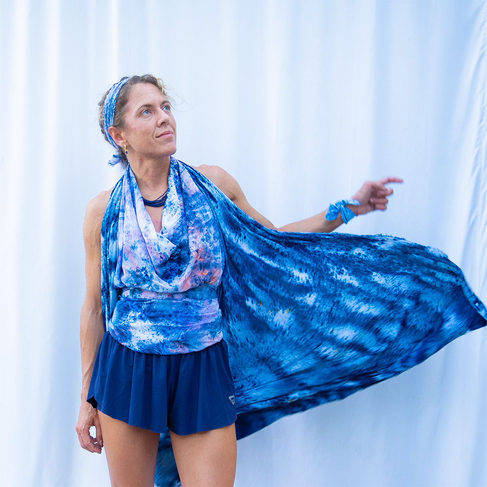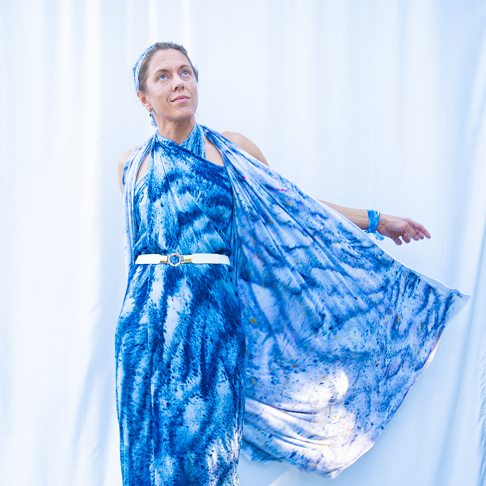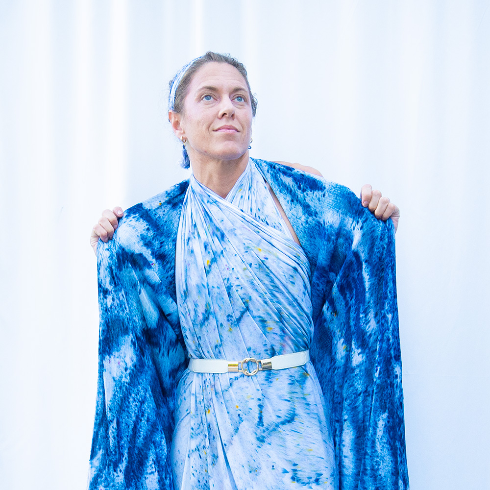 The Navy Square Wrap is a 50×50 inch square cut from 100% rayon. The generous size gives you full coverage as a wrap or shawl, and the lightweight rayon means it packs into nothing and emerges wrinkle-free. Each piece is hand dash-dyed using Dharma Procion MX fiber reactive dye — powder pigment fixed permanently into the fiber in small, deliberate dashes. The color is set, not coated, so it remains vivid through years of washing. Care: machine wash cold, regular cycle. Lay flat to dry. Do not iron.