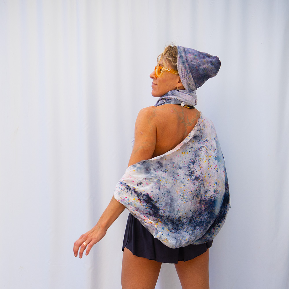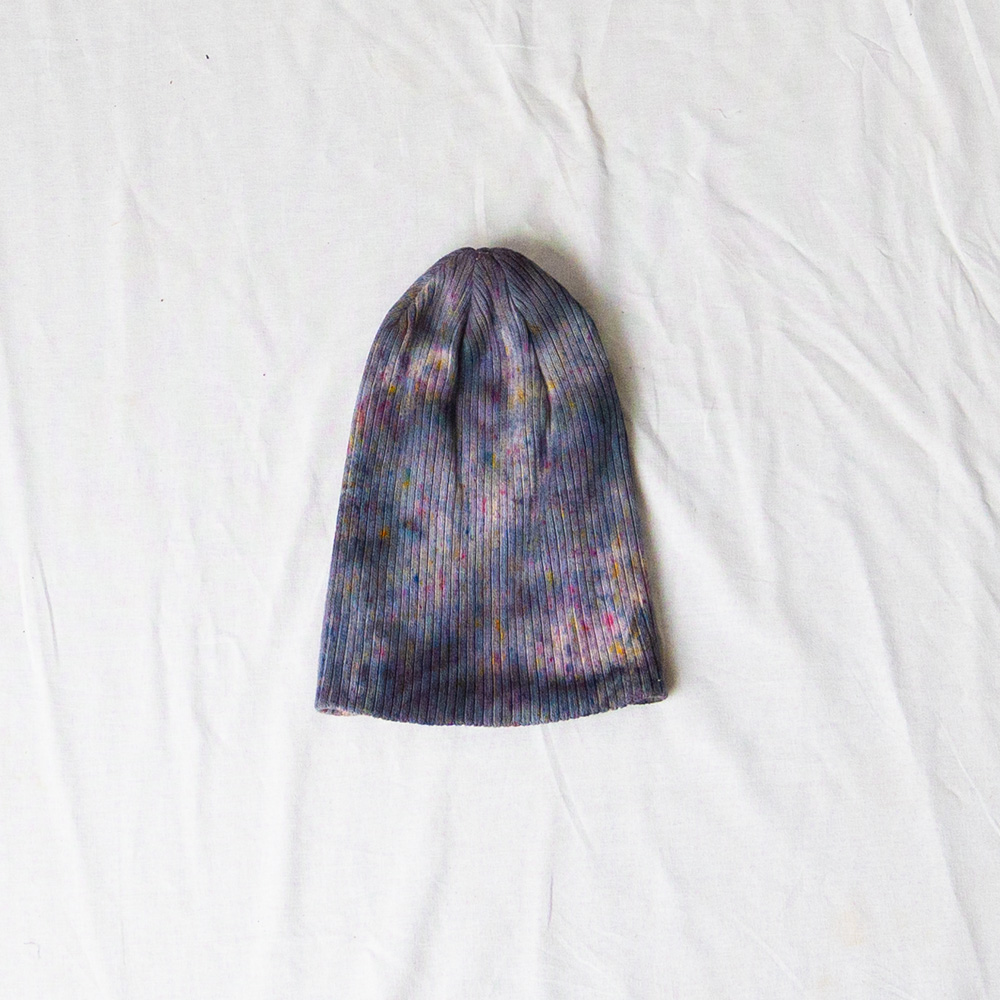 The New Black Beanie is knit from 100% cotton and measures approximately 7×10 inches when flat. The cotton construction breathes well and softens with washing, fitting most adult head sizes comfortably with a slight stretch. Each piece is hand dash-dyed using Dharma Procion MX fiber reactive dye — a powder pigment applied in small, intentional dashes and fixed permanently into the fiber. The color will not bleed or fade with normal washing. Care: machine wash cold, gentle cycle. Lay flat to dry.