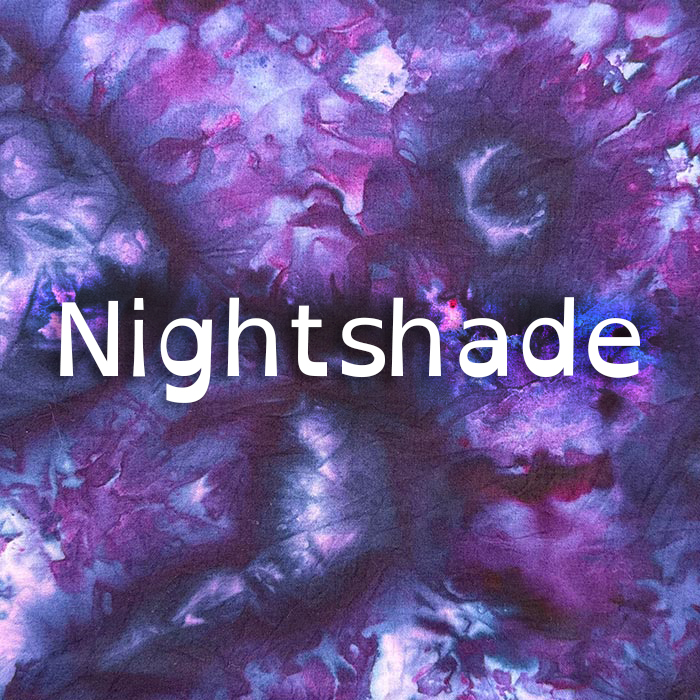 Nightshade is a deep, mysterious violet — named after the poisonous berry plant, dark and enchanting. A Winter violet neutral: deep, muted, and complex. Dharma Trading Co. #185. Pairs with Ultra Violet and Deep Purple for a deep violet neutral family; powerful on medium, olive, and deep complexions.