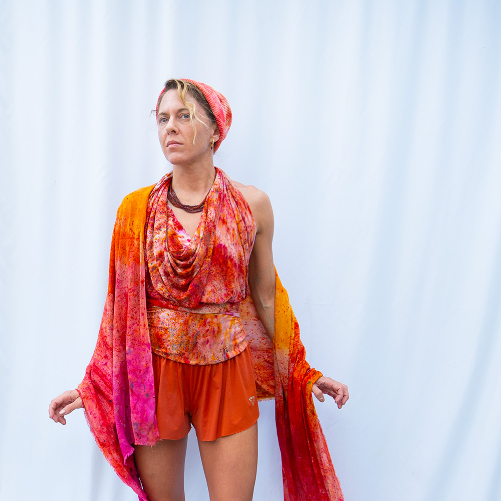 Loop, belt, or let the Pink Fire Slim Wrap trail — the 20×72 inch rectangle becomes a scarf, a sash, or a layering piece without trying.