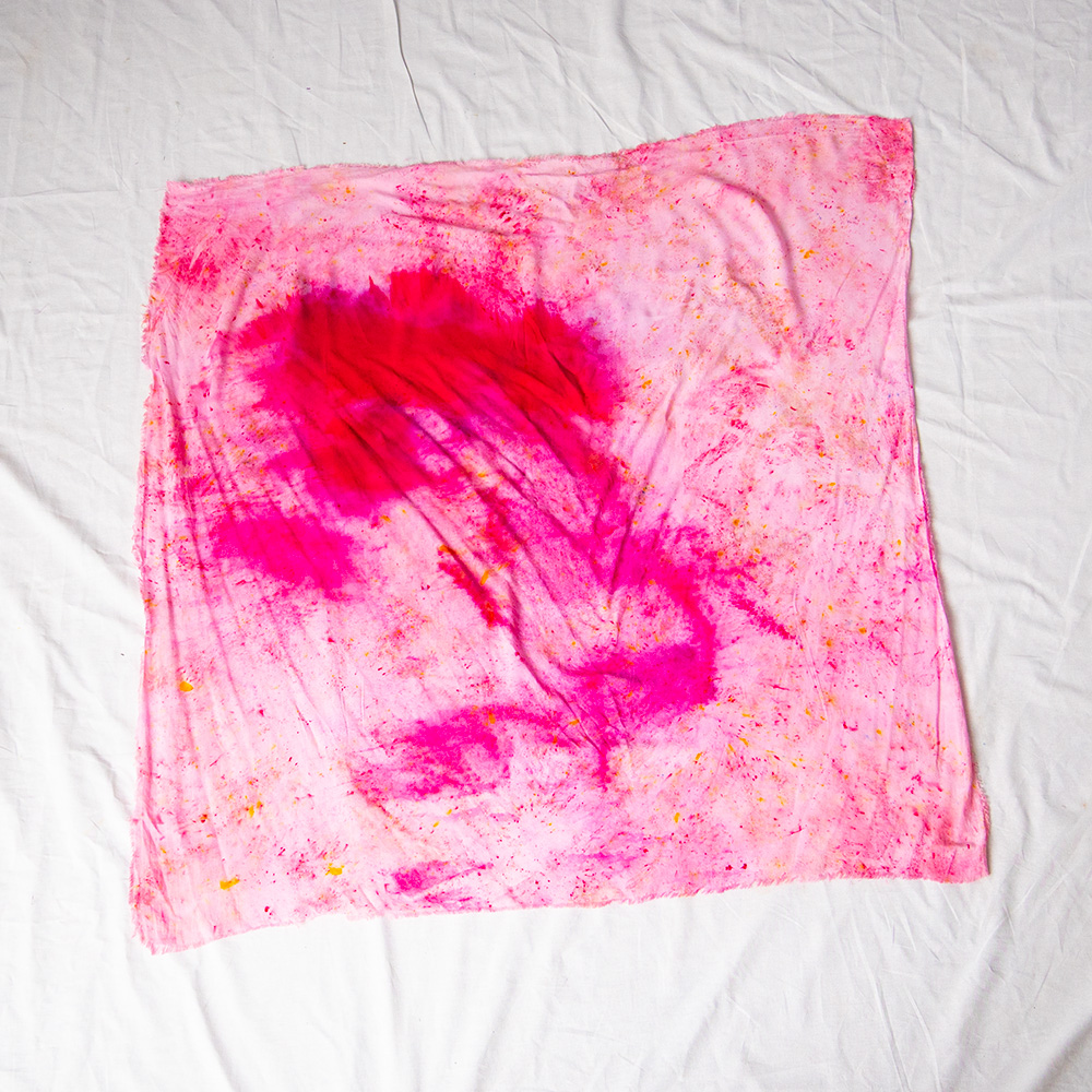 The Powder Pink Wild Rag is a 36×36 inch square scarf cut from 100% Rayon. Rayon drapes with a fluid, silk-like weight that holds a knot beautifully and moves with you all day. Each piece is hand dash-dyed using Dharma Procion MX fiber reactive dye — a powder pigment mixed with a fixative and applied in small, intentional dashes so the color sets permanently into the fiber. No two pieces are identical. Care: machine wash cold, gentle cycle. Hang or lay flat to dry. Do not iron.