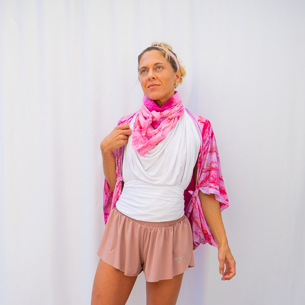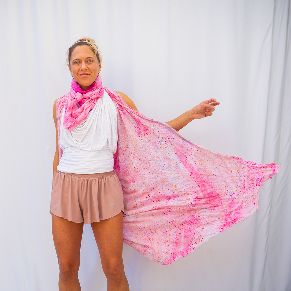Wrap, knot, or drape the Powder Pink Wild Rag around your neck, head, or shoulders — one square scarf that rewrites your outfit in seconds.
