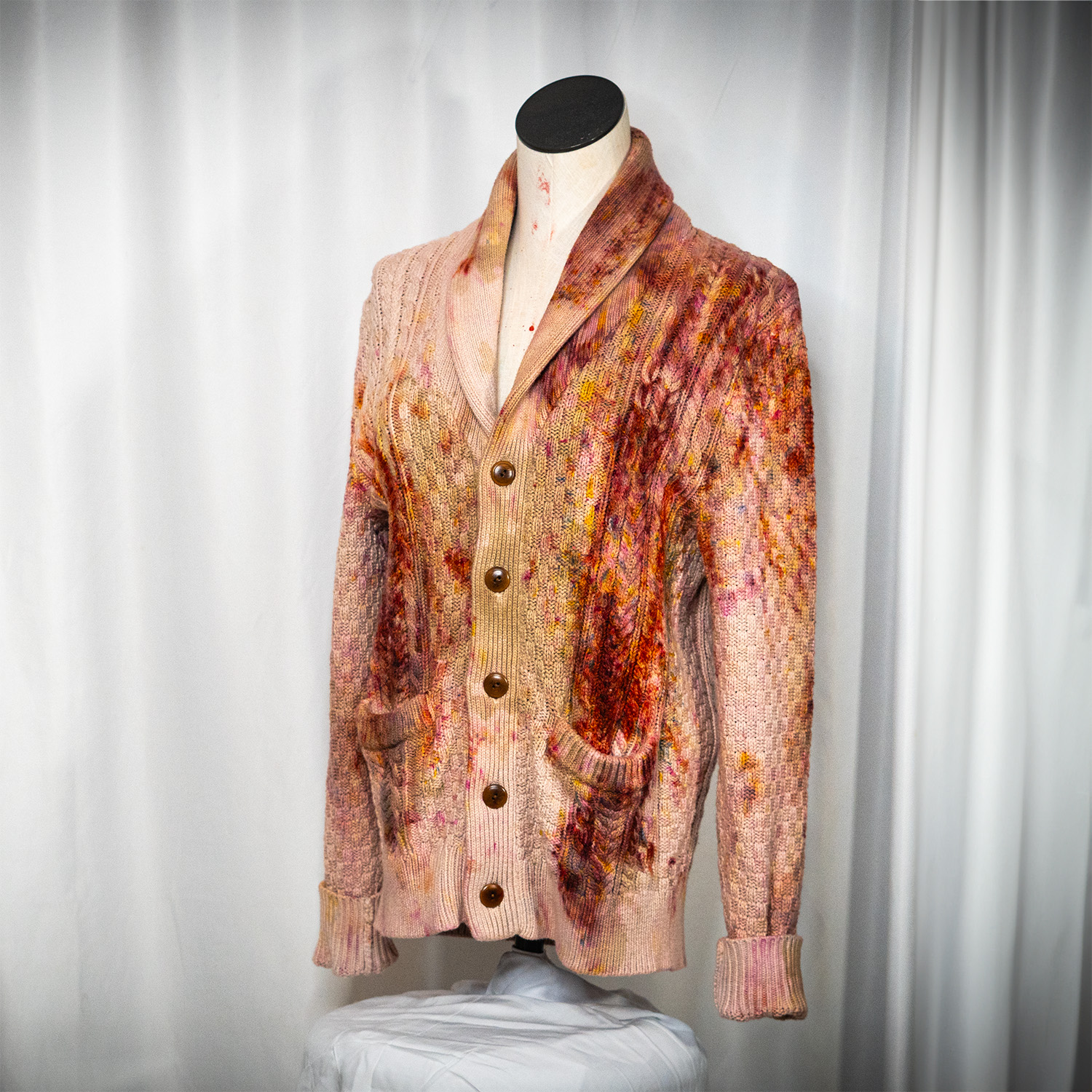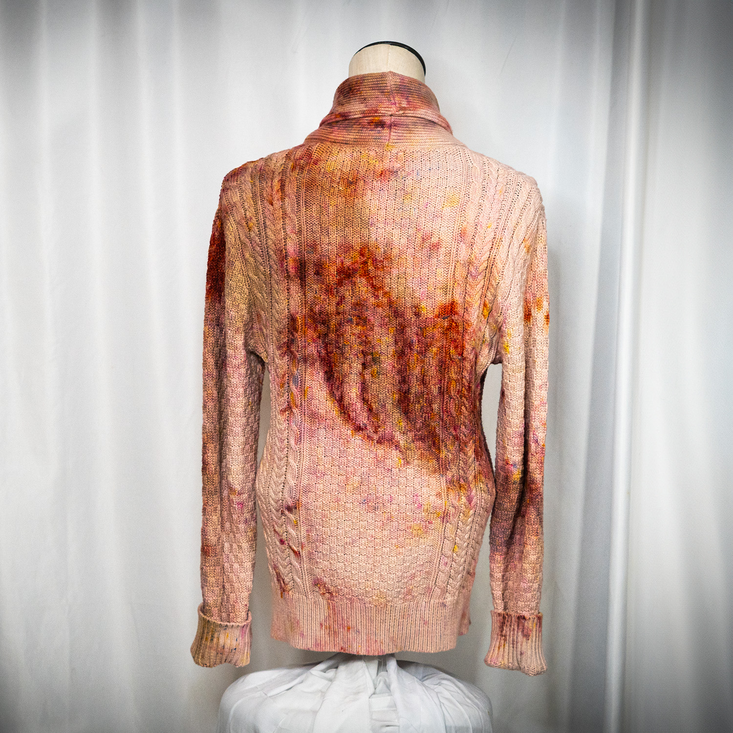 The Rust Brown Cardigan is a J. Crew Heritage Cotton Cardigan, knit from 100% dense cotton with a classic shawl collar and cable-knit pattern. The compact knit is sturdy and breathable with a dry hand feel — structured enough to hold its shape, relaxed enough to wear all day. Each piece is hand dash-dyed using Dharma Procion MX fiber reactive dye applied in small, deliberate amounts so the color sets permanently into the cotton. Sizing is unisex. Care: machine wash cold. Lay flat to dry to preserve the knit structure.