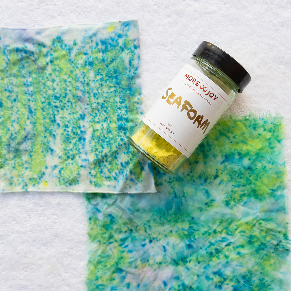 Seafoam is the palest green in our collection — airy and barely-there, the color of a breaking wave in morning light. An ultra-light Summer cool green. Dharma Trading Co. #85. The lightest cool green available; use at low concentration for a whisper-soft tint or pair with Sea Glass and Celadon for a layered ocean gradient.