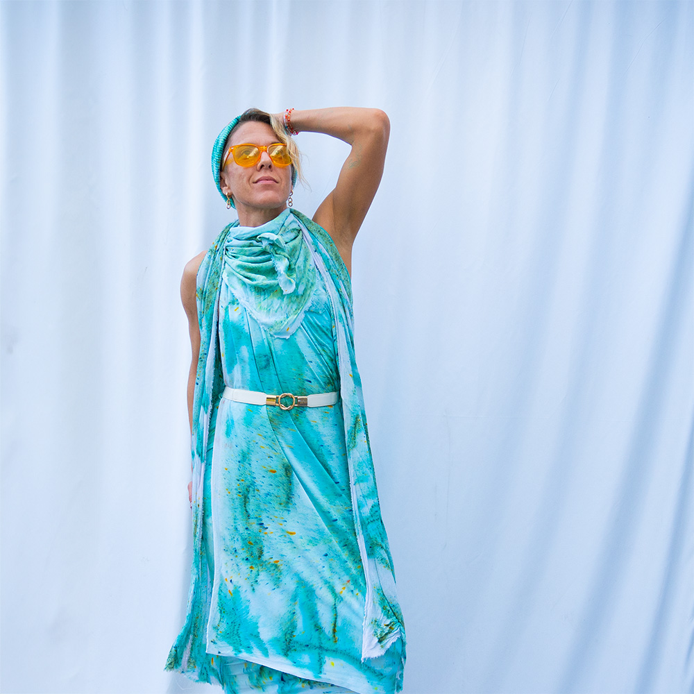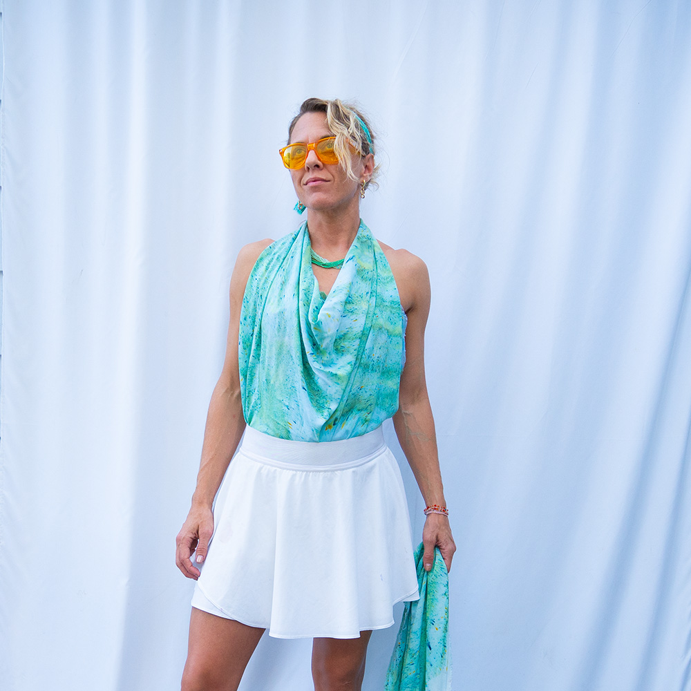 Wrap, knot, or drape the Seafoam Wild Rag around your neck, head, or shoulders — one square scarf that rewrites your outfit in seconds.