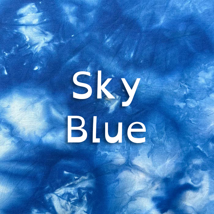 Sky Blue is a cool, open blue — the color of a clear sky at midday, expansive and freeing. A Summer neutral-blue, light enough to feel airy. Dharma Trading Co. #26 (Blue MX-R). Pairs with Wedgewood Blue and Baby Blue for a soft blue family; works as a neutral in cool-toned wardrobes.