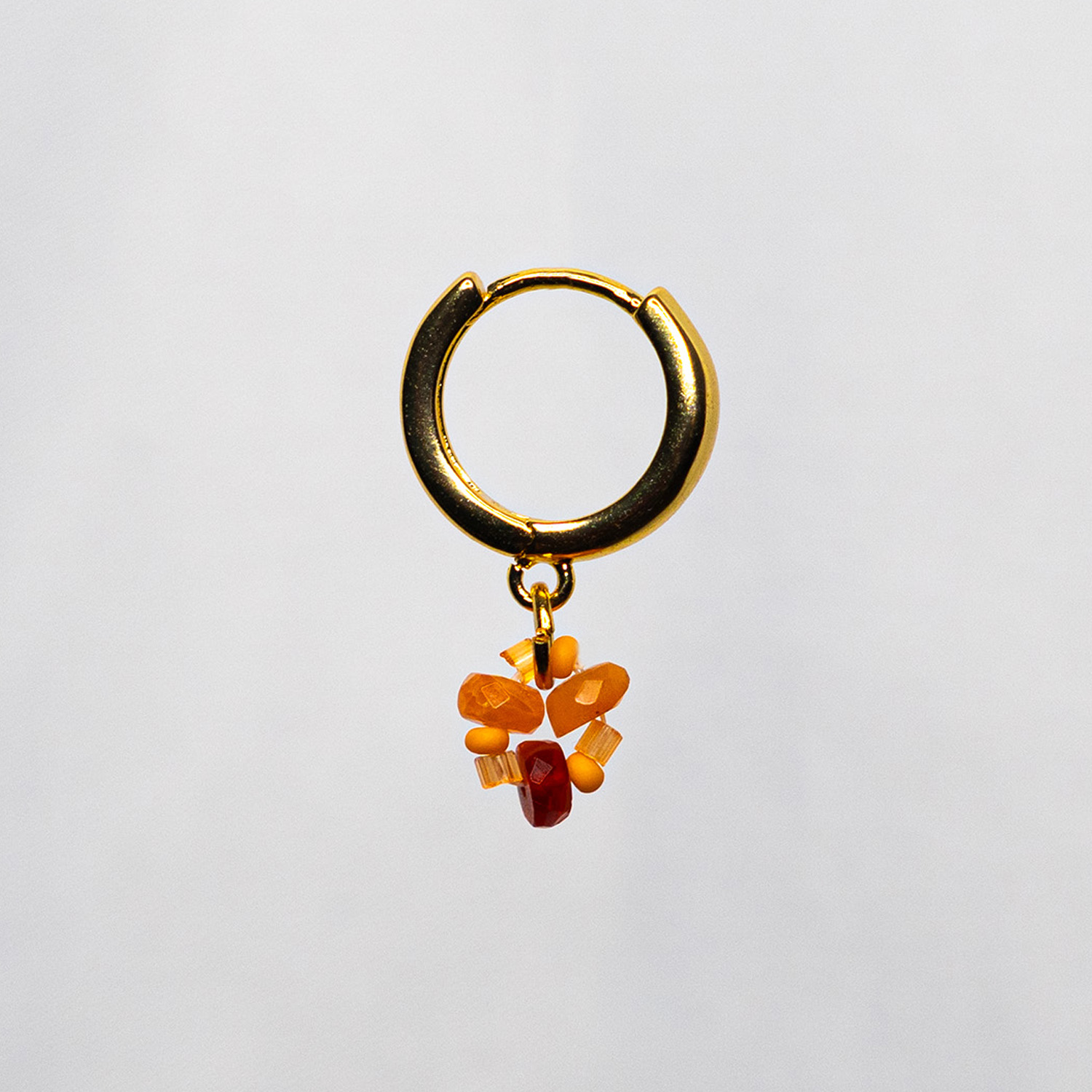 The Tangerine Opal Earrings pair Opal gemstones with Czech Preciosa Ornela beads on 18k gold huggie hoops — small enough to wear every day, interesting enough to earn a compliment.