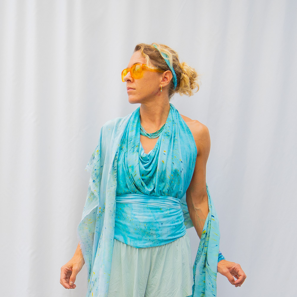 Loop, belt, or let the Teal Slim Wrap trail — the 20×72 inch rectangle becomes a scarf, a sash, or a layering piece without trying.