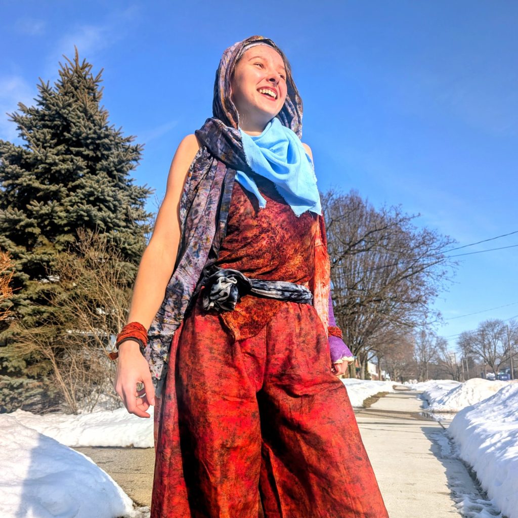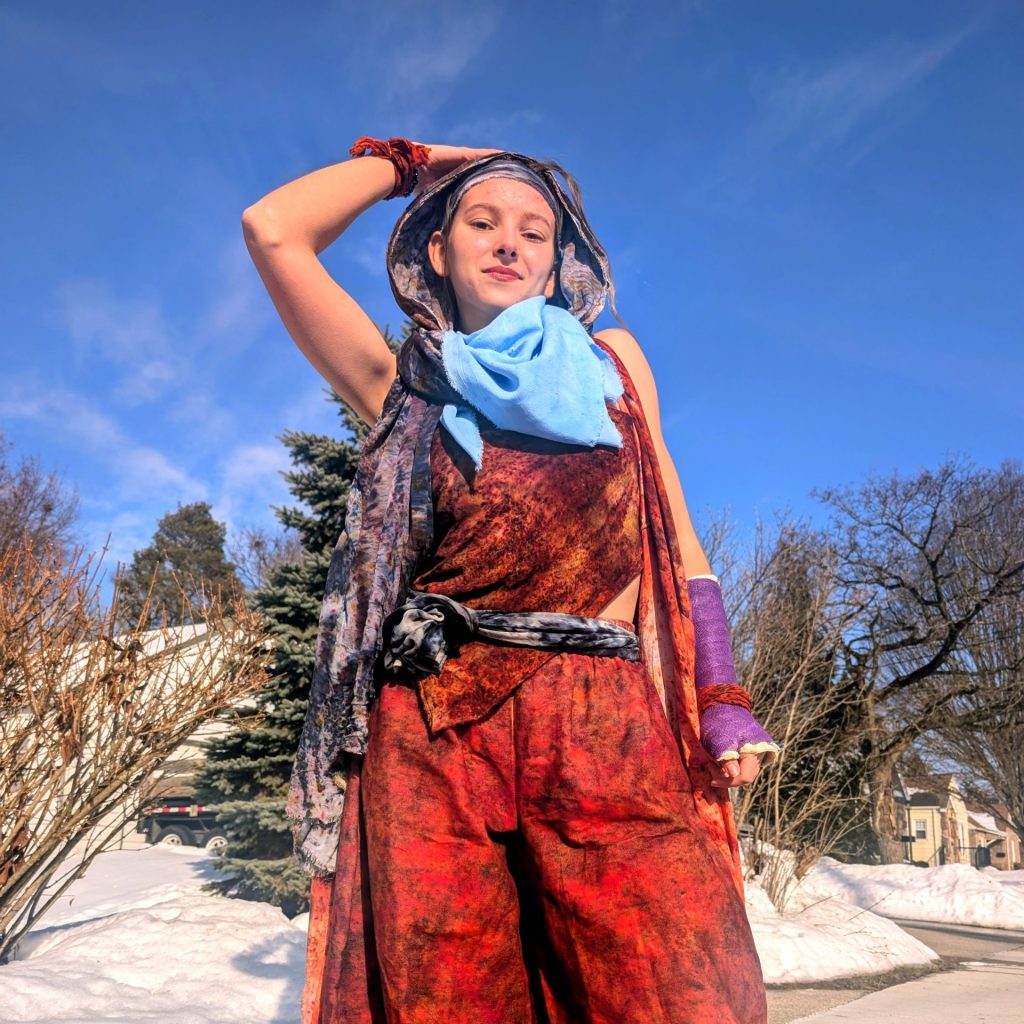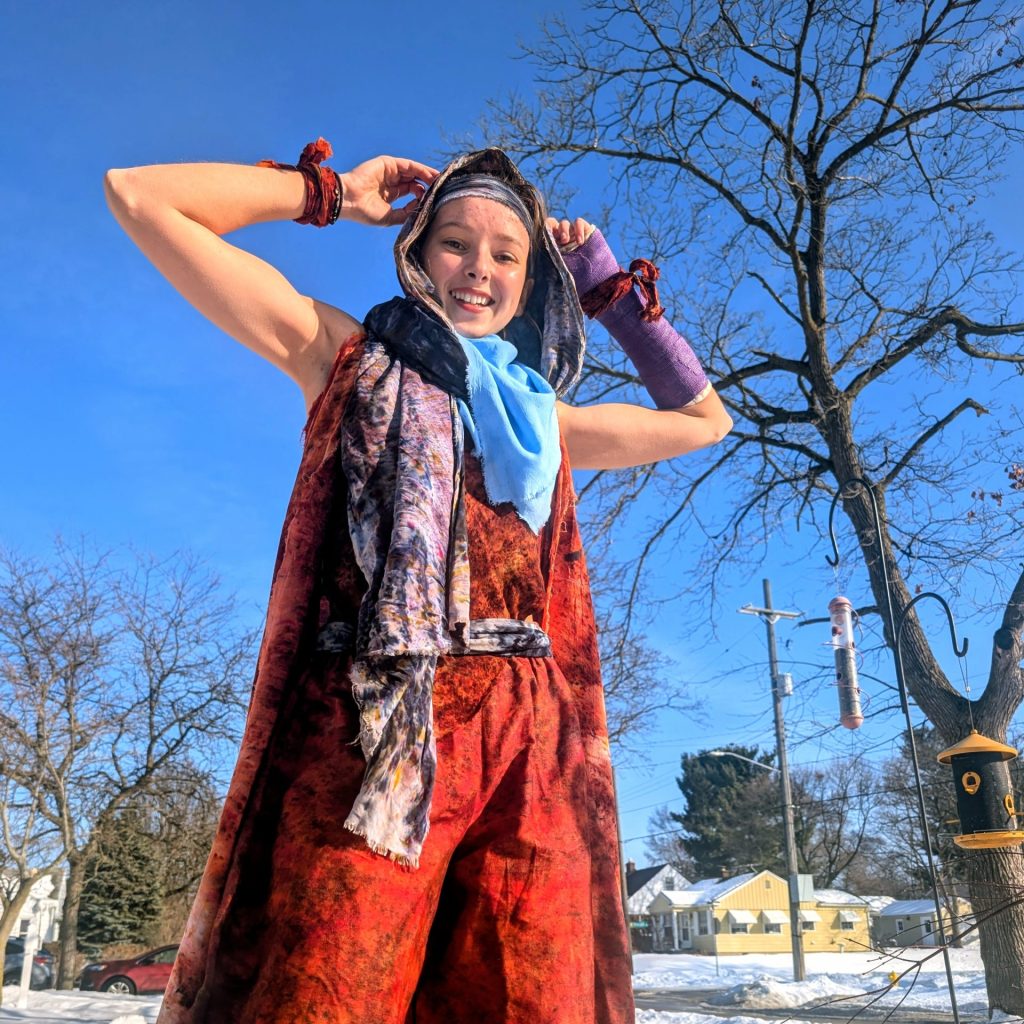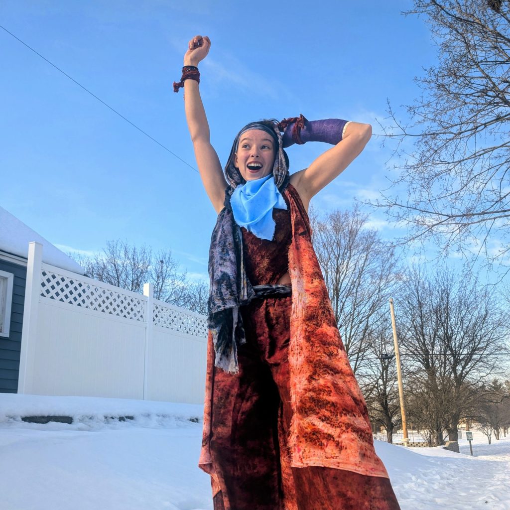 Robyn and I met through Lindy Hop and swing dance — through twirling, laughter, and the shared language of movement. She is a bright light in my week and someone whose creative practice runs deep. With a wall full of her own art and a long history of playful hair color experiments, she understands transformation as joy-work. When she told me she had been noticing Ruddy Ducks in local ponds — especially that curious sky-blue bill — I knew we had our bird – and what a bird to embody!