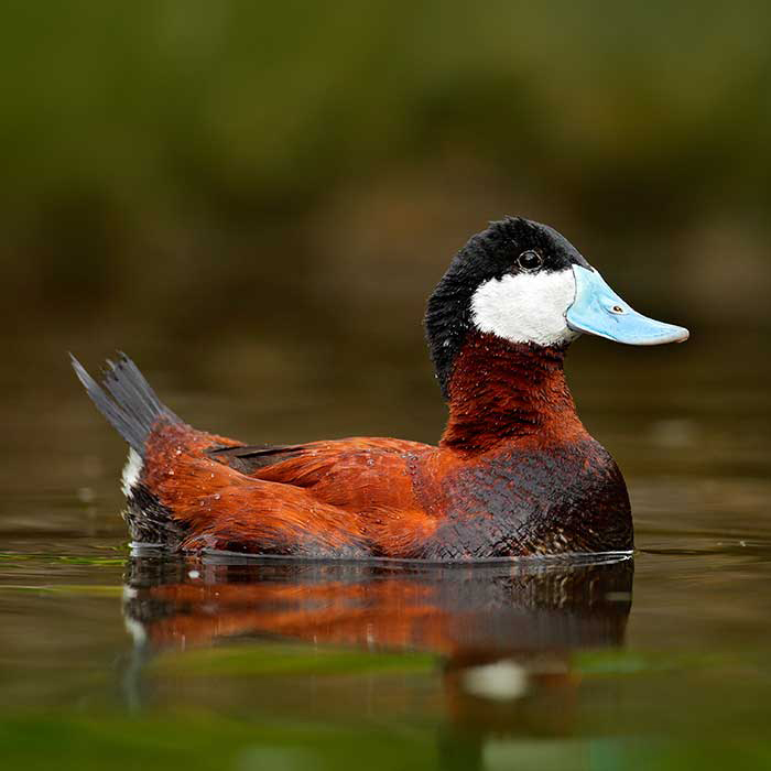 In breeding season, the males glow with rich rusty-reddish bodies, inky black caps, and that signature powder-to-sky blue bill that looks almost unreal against the water. Unlike many ducks that rely on subtle camouflage, the Ruddy Duck leans into contrast.
