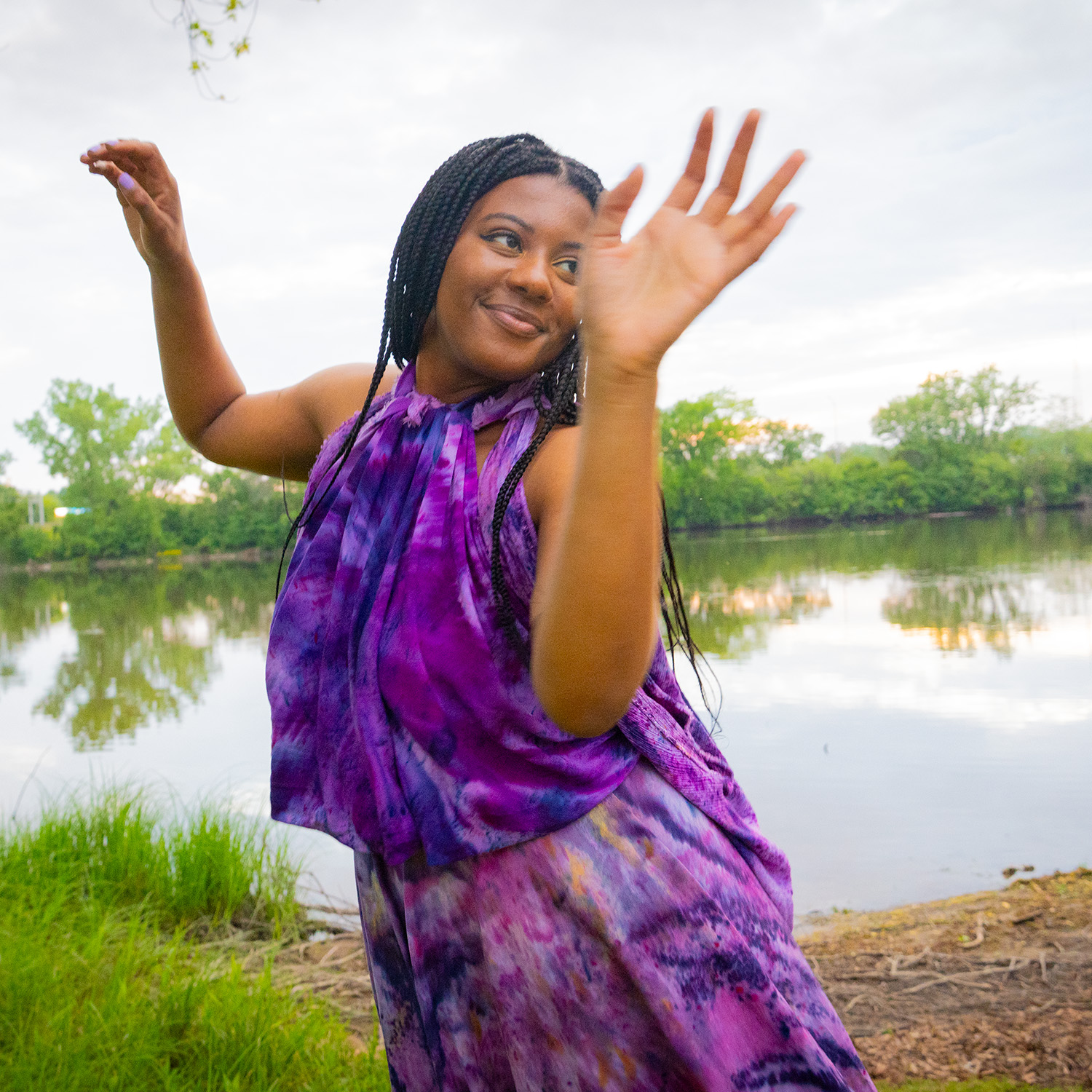 Nick stepped out of black and into Red Violet — a color of curiosity, transformation, and emotional depth. We met dancing at Rosa Parks Circle, and in this shade, he came alive. This portrait captures a moment of flow, of turning down the noise to hear what the heart has to say.